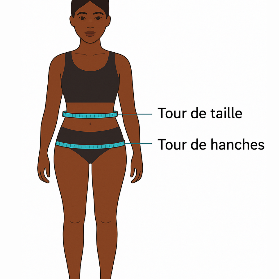 Tour de taille : Mesurez autour de votre taille naturelle, juste au-dessus des hanches.